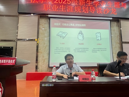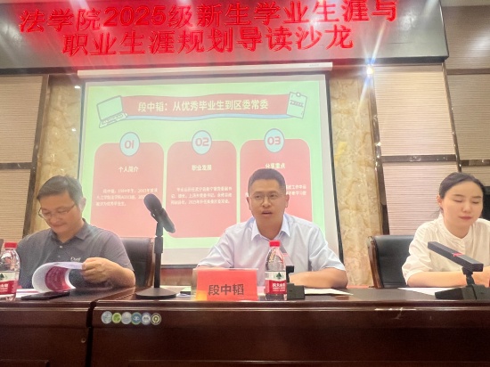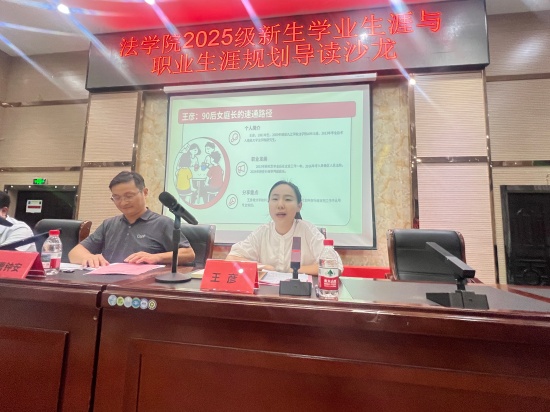 “如果团支书经历让我学会‘组织’,那裸辞国企、回母校租房备考的日子就教会了我‘取舍’。”九江市柴桑区人民法院行政审判庭庭长王彦用“曲线入职”告诫新生:职业规划越早试错成本越低,鼓励大家利用寒暑假进律所、法院、检察院实习,“把迷茫留在课堂外”。她送出“三句锦囊”——做好规划、持续学习、用好应届身份,“一个人可以走得快,一群人才能走得远”。