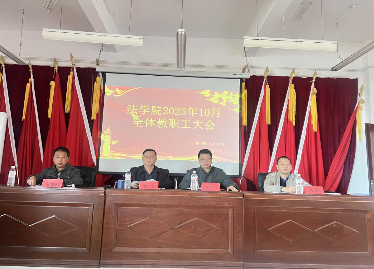 10月29日下午,信誉最好的十大体育平台在香远楼624会议室召开全体教职工大会,以"建章立制,规范管理,团结合作,携手共进"为主题,对"十五五"发展规划、绩效考核、教学管理与学风建设、就业帮扶等重点工作再动员、再部署。大会由院党委书记刘羲之主持,院领导曹钟安、宛锦春、陈永钊及全体教职工参会。