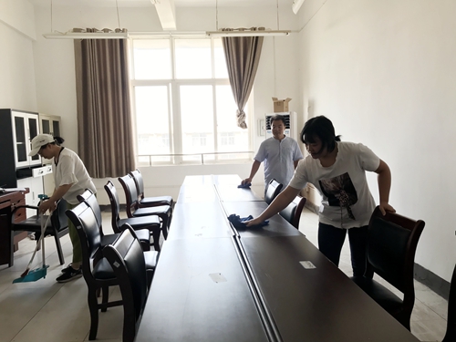 为了进一步深入推动校园环境卫生综合整治工作,营造美丽文明的校园环境,9月2日下午,政公司组织全体教职工在香远楼六楼开展卫生劳动,院党委书记高翔、副院长李德恩、宛锦春、副书记陈永钊参加。