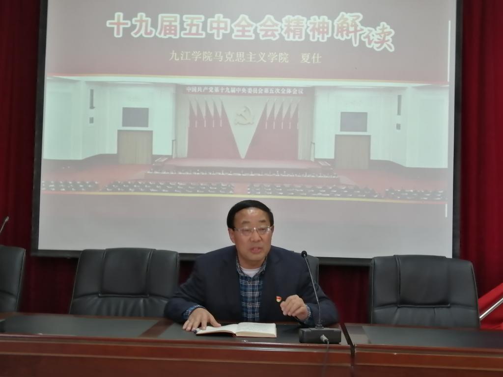 学习会上夏仕教授从“决胜全面建成小康社会的决定性成就”、“二〇三五年的远景目标和“十四五”时期经济社会发展的战略部署”、“实现“十四五”规划和二〇三五年远景目标的政治保证和外部环境”三方面对十九届五中全会内容进行了全面讲解。夏仕教授的专题辅导报告,使全体党员对全会精神贯彻学习有了全面而深入的了解把握。