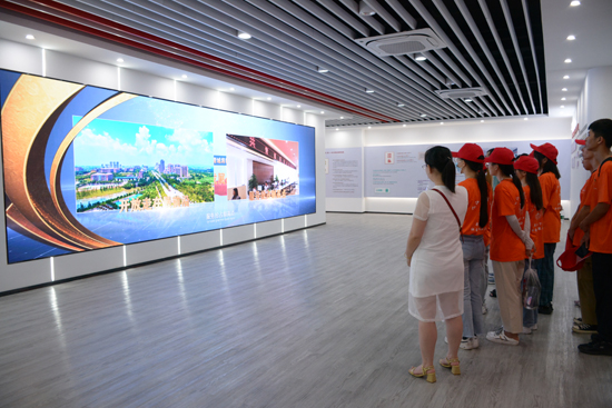 进入展馆,映入眼帘的是一面巨大的电子屏,领队老师和服务队队员们认真观看了这支共青城高新区的宣传视频,初步感受了共青城这些年来的飞速发展和共青人民艰苦奋斗的共青精神。在参观期间,展馆讲解员向大家讲解了共青城如何从只有98名满怀建设社会激情的上海青年的垦荒创业,到如今几十万人的万众创新的发展史。在共青城高新区展馆,远销国外的鸭鸭羽绒服,城市名片“共青板鸭”……那一张张事迹图,一篇篇详细的介绍阐述着共青人艰辛却伟大的发展历程,让同学们看到了现如今,这个青年占比超百分之七十的城市的活力与激情。科学技术是第一生产力,是先进生产力的重要标志,是人类社会的一种特殊的社会现象和社会活动。科学技术是社会发展所不可缺少的,它的发展大大提高了人类改造自然界的能力。共青城高新区展馆,向同学们展现出了这个城市的科技面貌与风采。