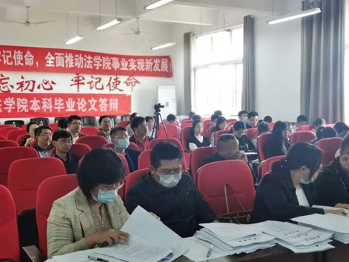 答辩开始前,由工作人员引导学生依照防疫规定扫码测温,按顺序进入答辩现场,答辩严格按照本科毕业论文工作程序进行。答辩室内,六位教师组成答辩小组,首先对在校毕业生进行线下现场答辩。老师们仔细听取学生通过PPT对论题的阐述与汇报后,通过一问一答方式,对学生进行了提问,答辩学生逐一作答。线下答辩结束后,借助腾讯会议线上连线,对因疫情无法返校的同学们开展了线上答辩,空间的跨越并没有阻隔师生间思想的碰撞与学术上的共鸣,线上线下相结合的方式,为师生间良好的沟通与交流扫清了障碍,保障了答辩工作的顺利开展。最后答辩小组充分点评了每一位学生的毕业论文,也对论文中需要改进和完善的地方给出了指导意见,整个答辩现场学术气氛良好、秩序井然。