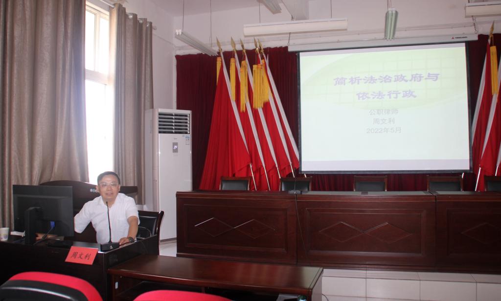 仪式结束后,周文利局长为参会人员带来了一场精彩的学术讲座。周文利局长从法治的内涵及概念切入主题,援引古今中外学界对法治及法治政府研究的相关成果材料,着重分析了法治政府表征及本质要求,并提出了自身对这一问题的具体见解。周文利局长认为,在全面推进依法治国的历史进程中,全社会要尊崇法治,积极为法治建设添砖加瓦。各级政府应当带头维护和践行法治,切实做好依法行政并维护法治的权威,让法治观念浸透到社会生活的方方面面。周文利局长还通过依法行政方面的具体案件举例,为如何强化法治和依法行政提出若干见解,兼具理论探讨意义和实务指导价值。整场讲座持续近两小时,与会人员均表示受益匪浅。