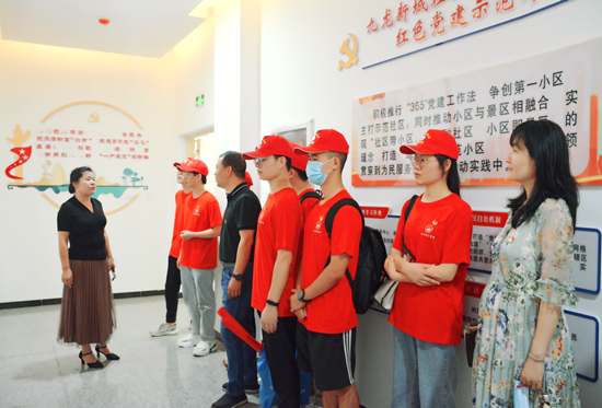 服务队在活动基地负责人的带领下先后参观了当地党史展和便民服务大厅,详细了解了九龙新城社区党组织建设、作用发挥、特色活动开展等情况,并与基层党员和群众积极交谈,共同探讨如何更好地加强社区党组织建设,以更好地发挥基层治理、服务群众的作用等。