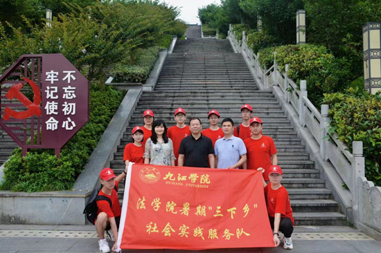 “万千烈士的英魂早已浸入生机勃发的青山绿水,成为九江人民永恒的骄傲。”南山公园烈士陵园分为前庭广场、陈列馆、烈士墓园、烈士纪念墙4个部分。陵园周围植满翠绿的松柏,风吹雨打巍然不动。一尊尊挺立的墓碑上方刻着鲜艳的红星,下方刻着烈士们的姓名。三下乡队员陈霞说道:“我不知道这里躺着谁的儿女,但我知道他们是为我们而死。”
