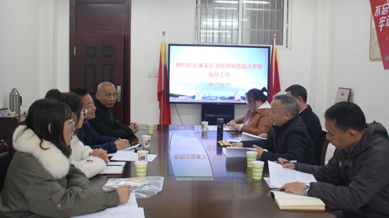 3月17日下午,九江市濂溪区法院严爱华副院长一行4人来我院考察交流,院长李德恩、党委书记张伏龙,知识产权教研室李军政主任、王菠博士出席了交流座谈。