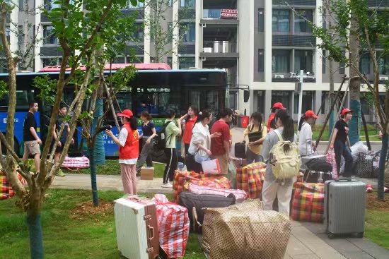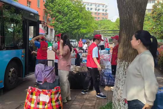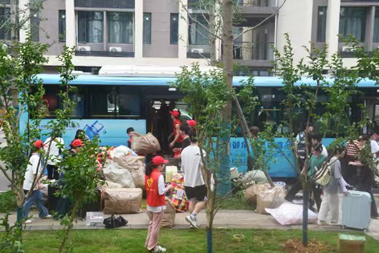学生处等部门为同学们准备了编织袋、配备搬迁工作志愿者、安排专用公交车辆等保证了搬迁工作井然有序。