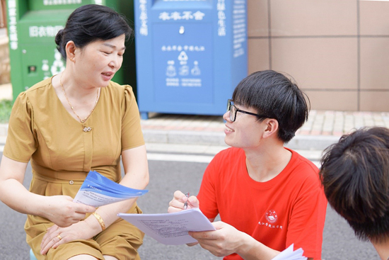 “大爷,法律知识了解一下吗?”“小伙子,给我也来一‘张’法律知识呀!”……队员根据当地居民的实际需求,整理出“基层常见法律问题及其处理方法”,设计成普法宣传单,在社区附近的公共场所、社区活动点和公司等地方,向当地居民发放宣传单,并回答他们提出的法律问题。