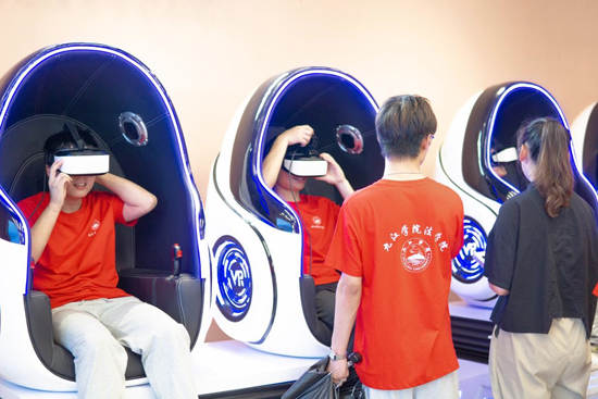 此外,队员还来到VR体验馆,通过沉浸式体验和互动式环节,身临其境地回到垦荒岁月。工作人员向大家介绍,体验馆主要包括旧貌换新颜、飞跃共青城、诉说共青等内容,真实地还原了1955年垦殖场的劳作场景。“戴上VR头盔,我瞬间变成了养鸭子的农户!”刘绍翔同学激动地与队员分享自己的体验。