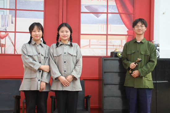 队员来到公社大食堂,与当地游客一起坐在长板凳上,观看了情景戏剧《青春丰碑》,这部红色舞台剧结合音乐、舞蹈和剧情,展示了垦荒队员把共青从荒地转为垦殖场的艰苦历程。