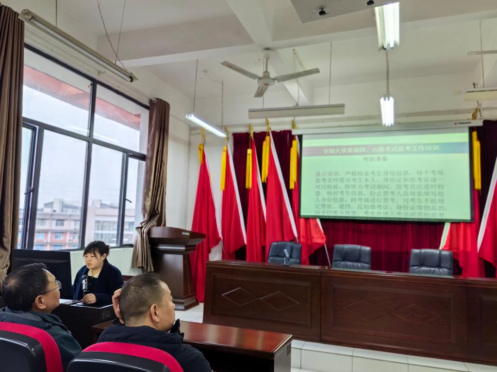 紧接着,为保障2023下半年国家英语等级考试监考工作顺利进行,教学科研科对有监考任务的老师进行了考前培训。
