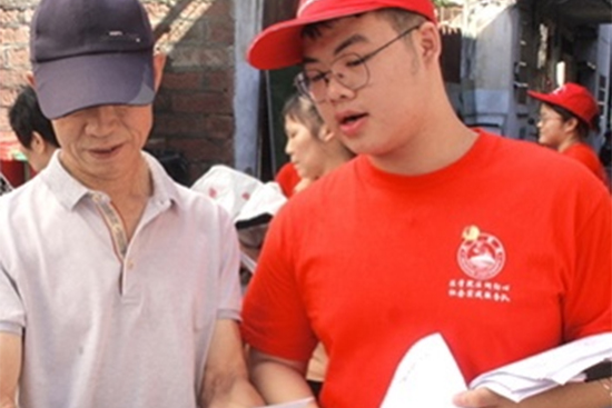 服务队以发宣传单、现场讲解、答疑解惑等方式宣传习近平新时代中国特色社会主义思想。面对群众所提出的问题,“法润初心”社会实践服务队队员们礼貌接待、耐心回应,以加强群众对习近平新时代中国特色社会主义思想的学习。