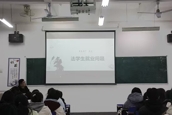 在“法学专业就业指导”讲座上,杨志强围绕“就业现状与挑战”和“主要就业方向”两大方面,向同学们剖析了法学专业的广阔前景和努力方向。他鼓励同学们积极参与实习,明确求职目标与生活愿景,认清形势、把握政策,为未来就业或升学提前做好准备。杨志强强调,要想在就业市场中受欢迎,不仅要有较强的学习适应能力、敬业精神和职业素质,更需要保持自身特色,拥有一技之长,才能在济济人才中脱颖而出。