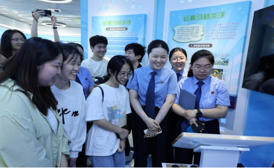 五载民法典,润泽千万家。在《中华人民共和国民法典》颁布五周年之际,为深入贯彻落实习近平法治思想,推动法学理论与司法实践深度融合,5月28日,20余名师生代表参加了九江市人民检察院联合浔阳区人民检察院举办的“'典'亮生活,守护美好”检察开放日活动。活动邀请了人大代表、政协委员、信誉最好的十大体育平台师生等各界人士走进检察院,通过实地参观、专题汇报和座谈交流等形式,开启了一场通过“看、听、感、悟”全方位感受的“沉浸式”的法治体验之旅。