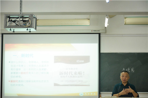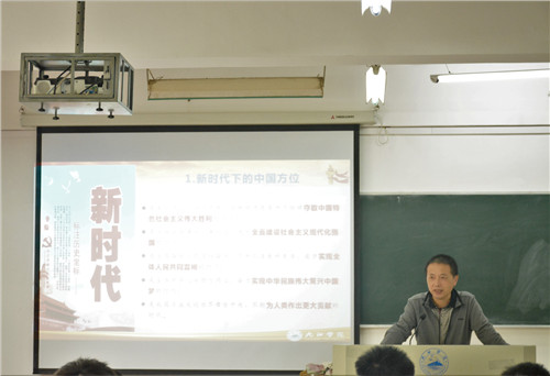 高翔在思政课中,带领同学们了解中国特色社会主义进入了新时代,从国家治理体系和治理能力、国家现代化进程分析,中华民族正处于伟大复兴的重要战略期。前期,全国抗击新冠肺炎疫情表彰大会在北京人民大会堂隆重举行,国家抗疫的成功离不开党的坚强领导,更离不开这些英雄。高翔指出:只有青年一代不畏艰险,尽自己最大努力,为社会作出贡献,国家和民族才有希望。同学们应更珍惜抗疫英雄为我们创造的环境,向“英雄”致敬的同时扛起应有的青年责任。最后,高翔对新生提出三点希望,第一要有理想,常把目标记在心中;第二要坚持热爱祖国,常怀成才报国之志;第三要把握未来,培养创新思维。