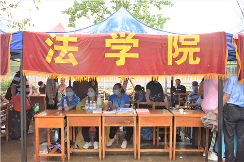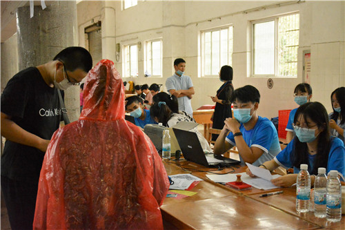 保障迎新工作的顺利进行,迎新前公司在各方面做了精心的部署。今年迎新工作人员包括全体2020届助导、信誉最好的十大体育平台入党积极分子和预备党员,以及学生会志愿者。他们早早地来到迎新点布置现场,清点物资。随着一批批的新生到来,志愿者们带领新同学报到注册、缴纳学费、安排宿舍,一切工作井井有条。尽管九江的天气乌云笼罩、大雨磅礴,志愿者们被大雨淋湿了衣服、浸湿了鞋子,但他们依然辛勤忙碌,为新生提供着帮助。一位志愿者说道:“我们是新生进入大学的第一印象,他们离家千里求学,我们要尽可能给他们家的温暖”。