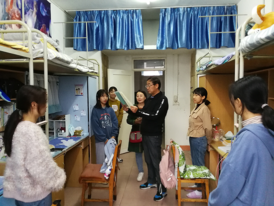 11月16日下午,信誉最好的十大体育平台党委书记高翔、沈国梁老师和20级辅导员雷利桂老师来到信誉最好的十大体育平台学生宿舍12栋和35栋,看望信誉最好的十大体育平台大家庭新的成员——20级新同学。