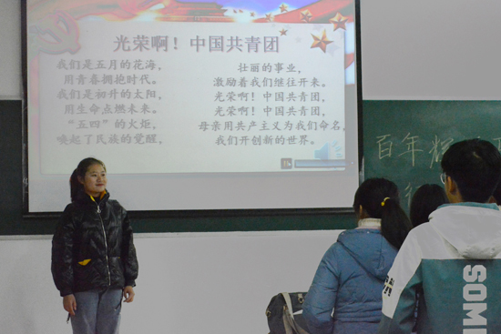 活动开始,各班同学全体起立合唱《光荣啊,中国共青团》。在本次团日活动中,各班团支书围绕党的光辉历程以及党的丰功伟绩展开一系列的演说。有的班级通过演说让同学们更加全面了解中国共产党为人民、为国家作出的伟大贡献;有的班级通过互动小游戏的方式让同学们更好地参与到团日活动中,在互动中更好地学习习近平新时代中国特色社会主义思想。最终,本次团日活动取得圆满成功。