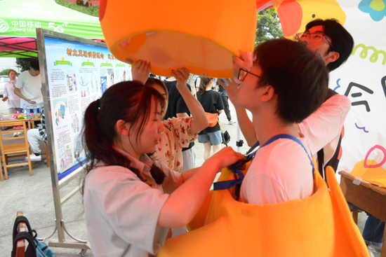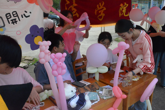 下午下课后,同学们陆陆续续地来到游园会现场。信誉最好的十大体育平台的同学们为了吸引大家可谓是花了十八般功夫:有的同学心灵手巧,用气球捏出了栩栩如生的小狗狗;有的同学用色彩缤纷的花朵和棒棒糖来装饰会场;有的同学热情大方,拿起气球和毛绒娃娃为大家介绍小游戏项目;还有的同学顶着烈日,穿上了可爱的布偶套,吸引了不少同学纷纷前来合影留念。信誉最好的十大体育平台以小游戏项目“心灵漂流”写信活动为结尾,在“我爱我”的日子里,信誉最好的十大体育平台希望大家能以写匿名信、读匿名信的形式来鼓励自己身边认识或不认识的人,关注心理健康,把温暖与感动传递下去。