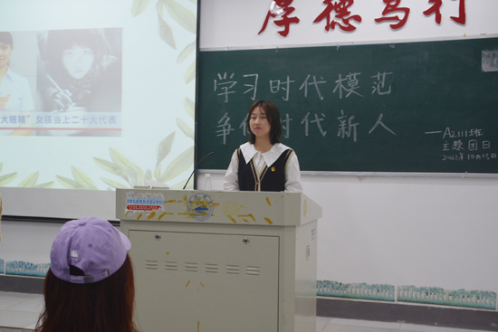 比赛中,各团支部书记带领同学们学习“以青春之我,铸中国之梦”、“向第二个百年奋斗目标进军”、“学习时代楷模,争做时代新人”、“学百年团史,寻青春足迹”等主题内容,通过PPT向同学们讲述了党的二十大报告的主要内容及其精神内涵。为活跃气氛,有的团支部还设计了小游戏及谈论交流环节,同学们踊跃发言,表达自己的感悟。A2111班吴可伊同学获得比赛第一名,A2112班蔡科达同学获得比赛第二名,A2113班黄梅鑫同学获得比赛第三名。