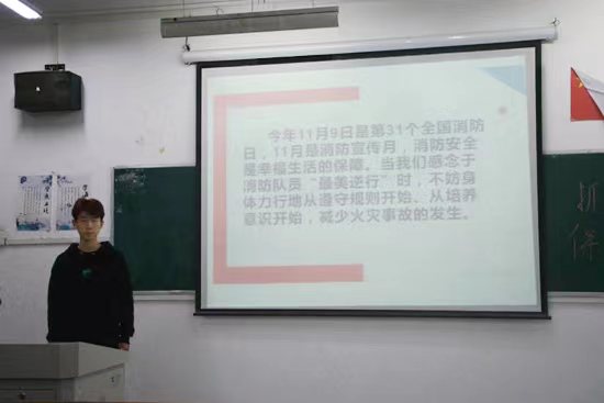 2022年11月9日是第三十一个全国消防日,为加强学生的防火防灾意识,公司组织各班级开展“抓消防安全,保高质量发展”主题班会。