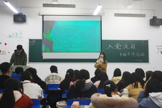 2月23日晚19点,信誉最好的十大体育平台学生党支部、团委在香远楼各班教室开展了组织发展流程宣讲活动,信誉最好的十大体育平台学生党支部学生党员及信誉最好的十大体育平台全体学生参加。