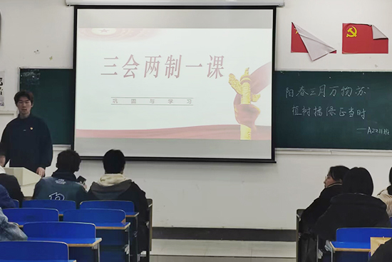 活动开始,各班团支书带领同学们回顾了“三会两制一课”的主要内容,并通过抽查背诵的方式,来学习巩固“三会两制一课”知识。主持人通过课件讲解进入主题,介绍植树节起源,学习植树文化,了解国家生态环境保护的大政方针,观看了植树节期间的视频。