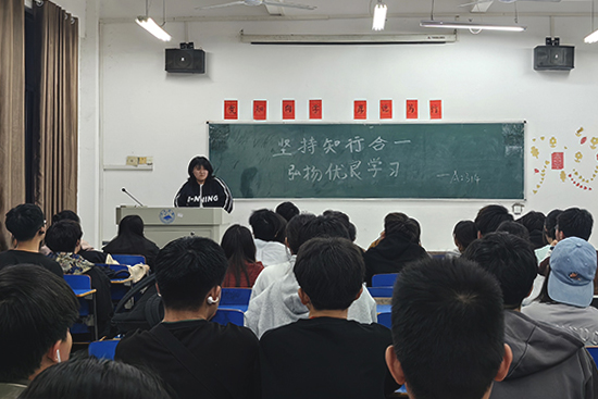 各班班主任带领同学们学习了学习强国中的文章《坚持知行合—,弘扬优良学风》。在分享心得环节,同学们纷纷上台,畅所欲言,分享自己的阅读心得和体会。同学们表示,知行合一,笃行致远,学风建设之路漫长,需要大家齐心共筑。