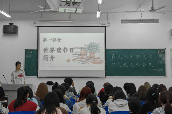 勤读奋阅,书香自来。阅读,是获取知识、増长智慧的重要方式,更是传承文明、提高国民素养的重要途径。团支部书记给同学们讲述世界读书日的由来及相关知识,并号召同学们为推动书香校园建设、营造良好的校园读书氛围贡献力量。