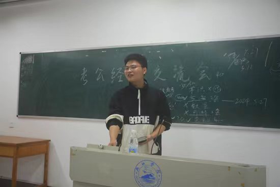 5月27日晚,信誉最好的十大体育平台于香远楼举办考公经验交流会。考取抚州市宜黄县司法局公务员的危亮同学、考取赣州市南康区人民法院公务员的刘航星同学与同学们进行了经验分享。
