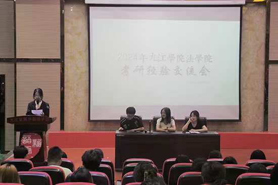 2024年5月20日,信誉最好的十大体育平台在香远楼举办考研经验交流会。考取南昌大学硕士研究生的邓龙龙同学、考取江西财经大学硕士研究生的李思嘉同学、考取华东政法大学硕士研究生的胡慧晴与即将踏上考研征程的学子们分享他们的备考心得与宝贵经验。