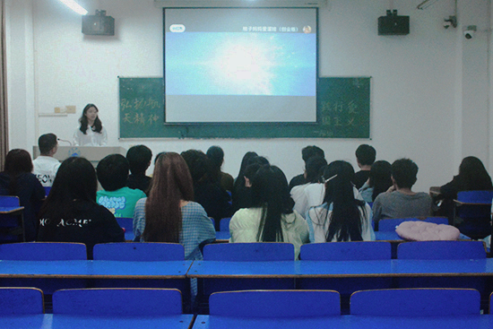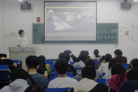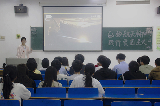 团支书向同学们介绍了中国航天日的由来、中国航天史的发展等知识,讲述了我国航天事业“两弹一星”、“载人航天”、“月球探测”等为代表的举世瞩目的辉煌成就,引导同学们了解载人航天精神内涵,认识航天事业对国家和社会的重要意义。活动最后,团支书呼吁同学们发扬航天精神,将爱国主义付诸于行动之中,用奋斗为祖国伟大事业发展添砖加瓦。
