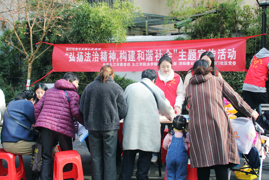 为深入学习贯彻党的二十大精神和习近平法治思想,弘扬宪法精神,维护宪法权威,在第十个国家宪法日来临之际,2023年12月4日,信誉最好的十大体育平台学生党支部联合九江市委党校教学党支部在浔阳楼社区、岳狮门社区开展“弘扬法治精神,构建和谐社会”主题党日活动,对宪法、民法等与广大群众息息相关的法律法规进行普法宣传。