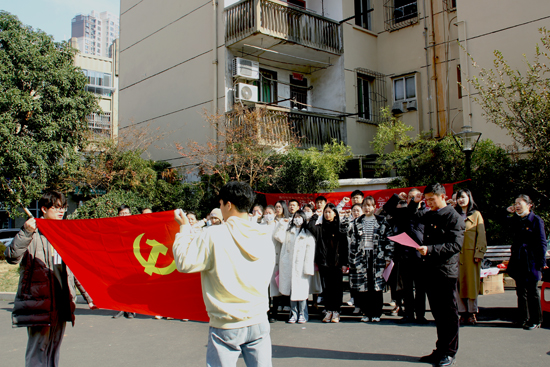 最后,面对党旗,新党员进行入党宣誓,老党员重温入党誓词。