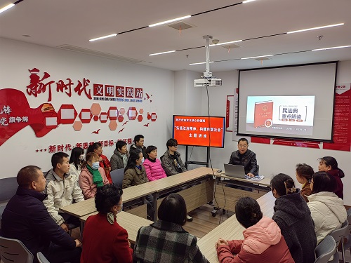 九江市委党校沈华明教授在浔阳楼社区会议室开展“弘扬法治精神,构建和谐社会”法制讲座,让社区群众近距离学习宪法知识、感受宪法精神。