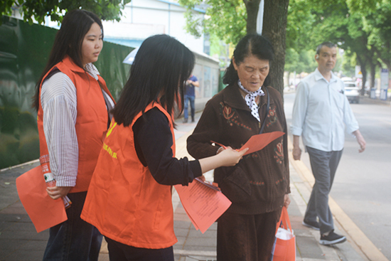 宣讲团成员在浔阳楼社区向市民进行“防溺水”知识讲解,发放防溺水宣传手册。