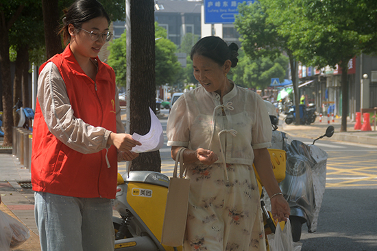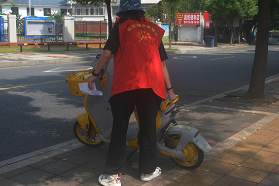 大家拿起清扫工具和印制好的“文明行为”宣传单,按照社区工作人员安排,对道路两侧乱拉乱挂、乱堆乱放的杂物、乱停乱放的单车等区域的环境卫生进行清扫和规整。大家对社区居民和过往市民发放“文明行为”宣传单,呼吁群众文明行为从点滴做起。