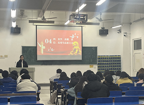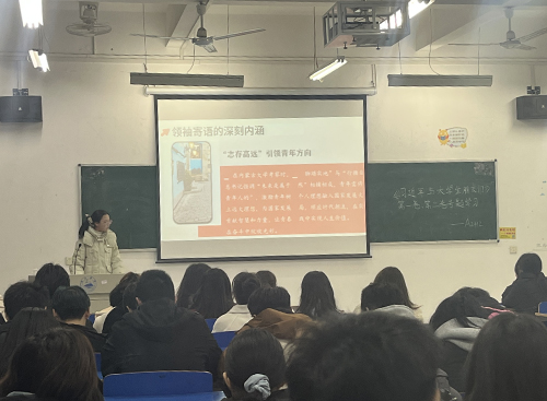 各团支部书记紧扣书中"脚踏实地"与"行循自然"的辩证关系,通过案例研讨、互动问答等形式,引导青年学子深入体悟新时代青年的使命担当,激励大家将个人理想融入民族复兴伟业,在扎根中国大地的实践中绽放青春光彩。在"总书记的青春对话"环节,通过重温习近平总书记考察高校时与青年交流的视频片段,团支部书记结合"青年大学习""青马工程"等实践平台,系统阐释主题团日活动作为思想熔炉和育人载体的双重价值。视频里总书记对青年"立大志、明大德、成大才、担大任"的殷切嘱托,与团日活动中热烈的思想碰撞相互交织,深化了同学们对"国之大者"的体悟。