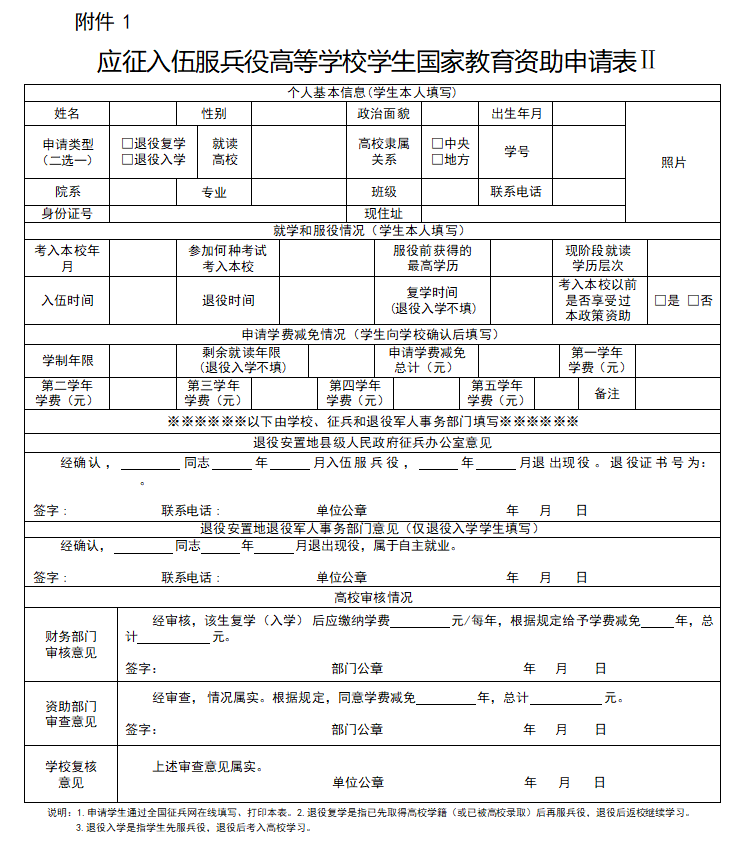 附件:1.应征入伍服兵役高等公司学生国家教育资助申请表Ⅱ