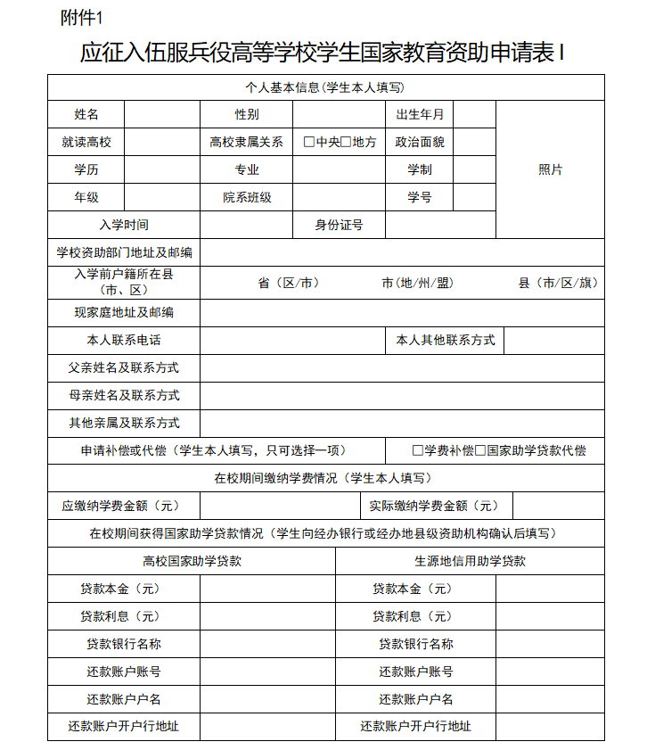 附件:1.应征入伍服兵役高等公司学生国家教育资助申请表Ⅰ