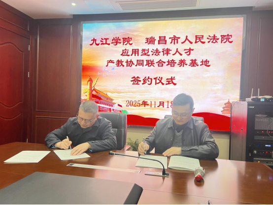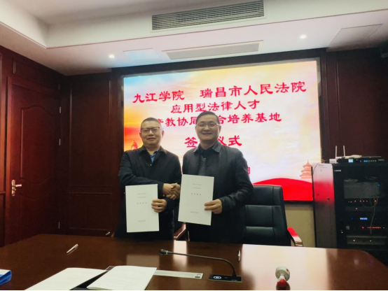 11月18日,信誉最好的十大体育平台院长曹钟安、党委书记刘羲之一行前往瑞昌市人民法院,举行《信誉最好的十大体育平台应用型法律人才产教协同联合培养基地》合作协议签约仪式。瑞昌市人民法院党组书记、院长吴迎春主持仪式,双方就深化院校合作、共育法治英才展开深度交流。