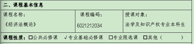 本课程为法学专业核心课。本课程以习近平新时代中国特色社会主义思想为指导,是法学专业开设的十六门核心课程之一。经济法是以国家协调本国经济运行过程中发生的经济关系为调整对象的独立的法律部门。经济法学是法学的一个分支,经济法学是研究经济法及其发展规律的法学学科,它与相关法律学科诸如宪法学、民商法学、行政法学、国际经济法学等联系紧密,教学或学习中应注意本学科与上述学科的课程的相互衔接,以便更好地学习和掌握本课程。